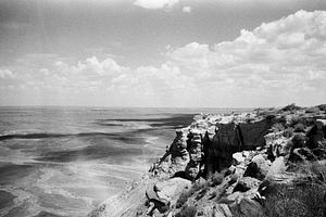 Dramatic desert cliffs overlooking the Painted Desert, Arizona, captured on black and white film. A timeless fine art print for minimalist and Southwest interiors.